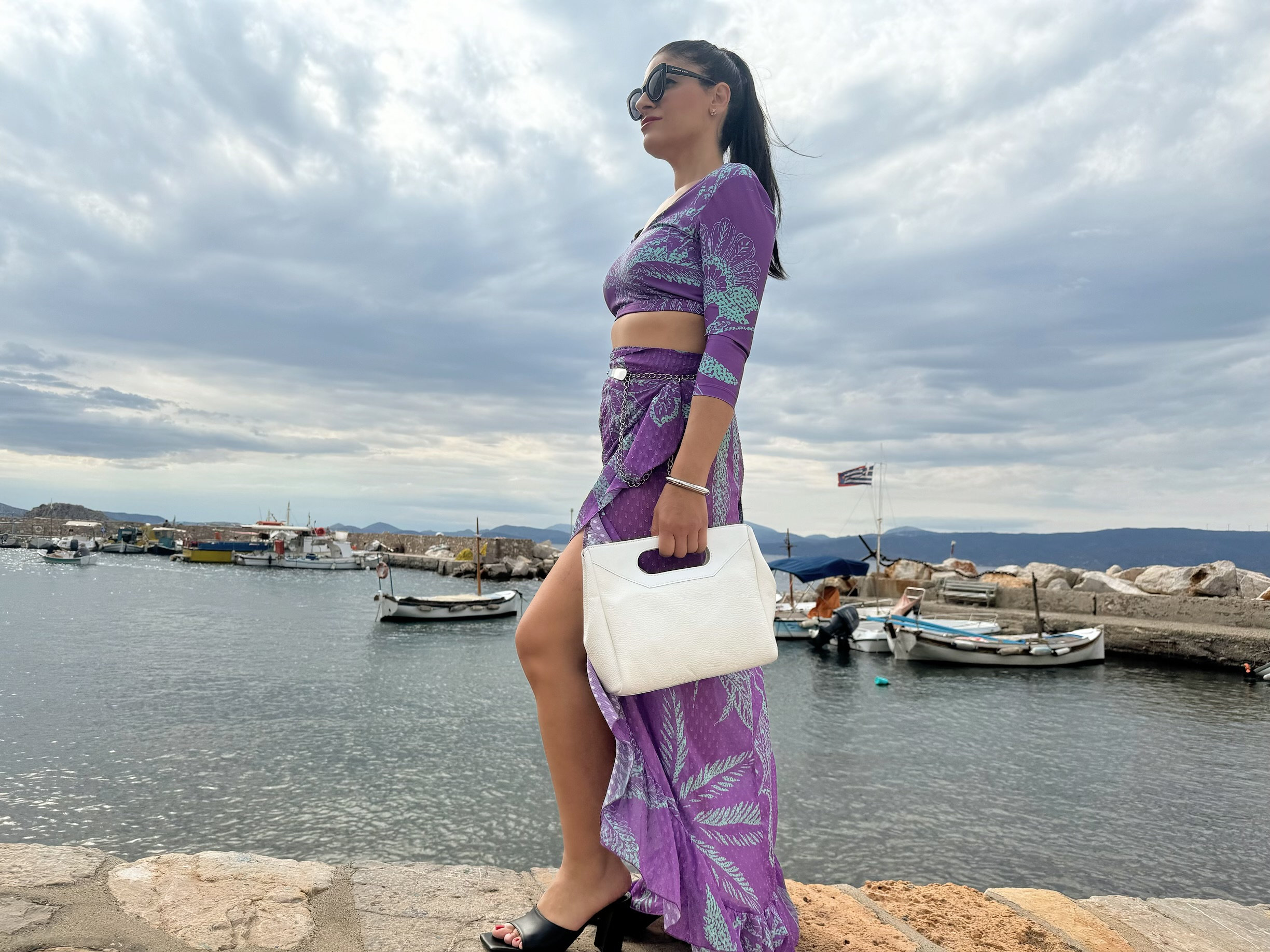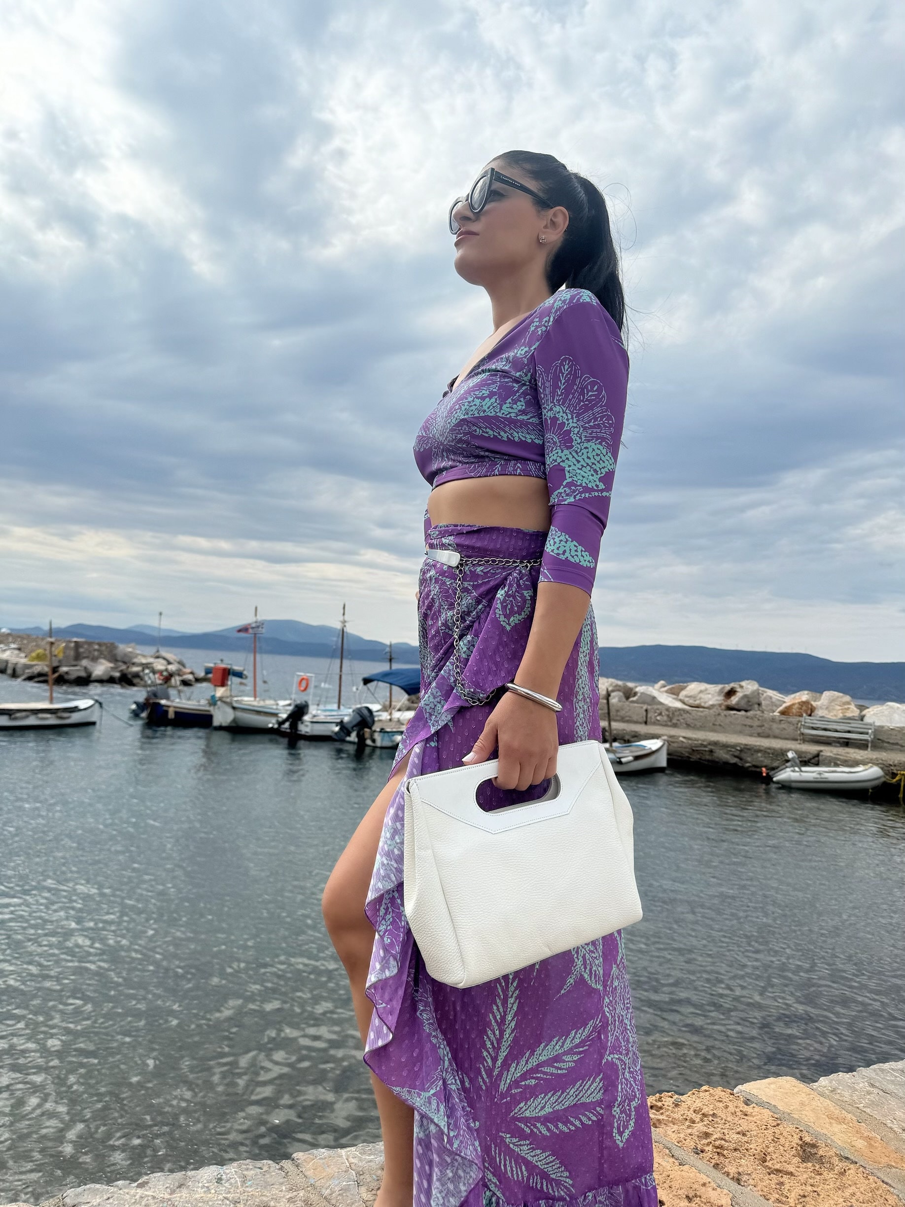 White Leather Handbag Top Handle Bag Shoulder Purse